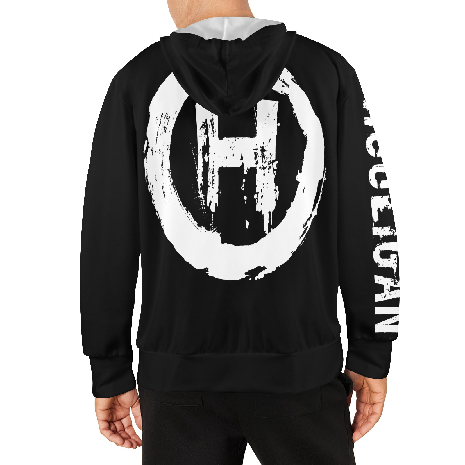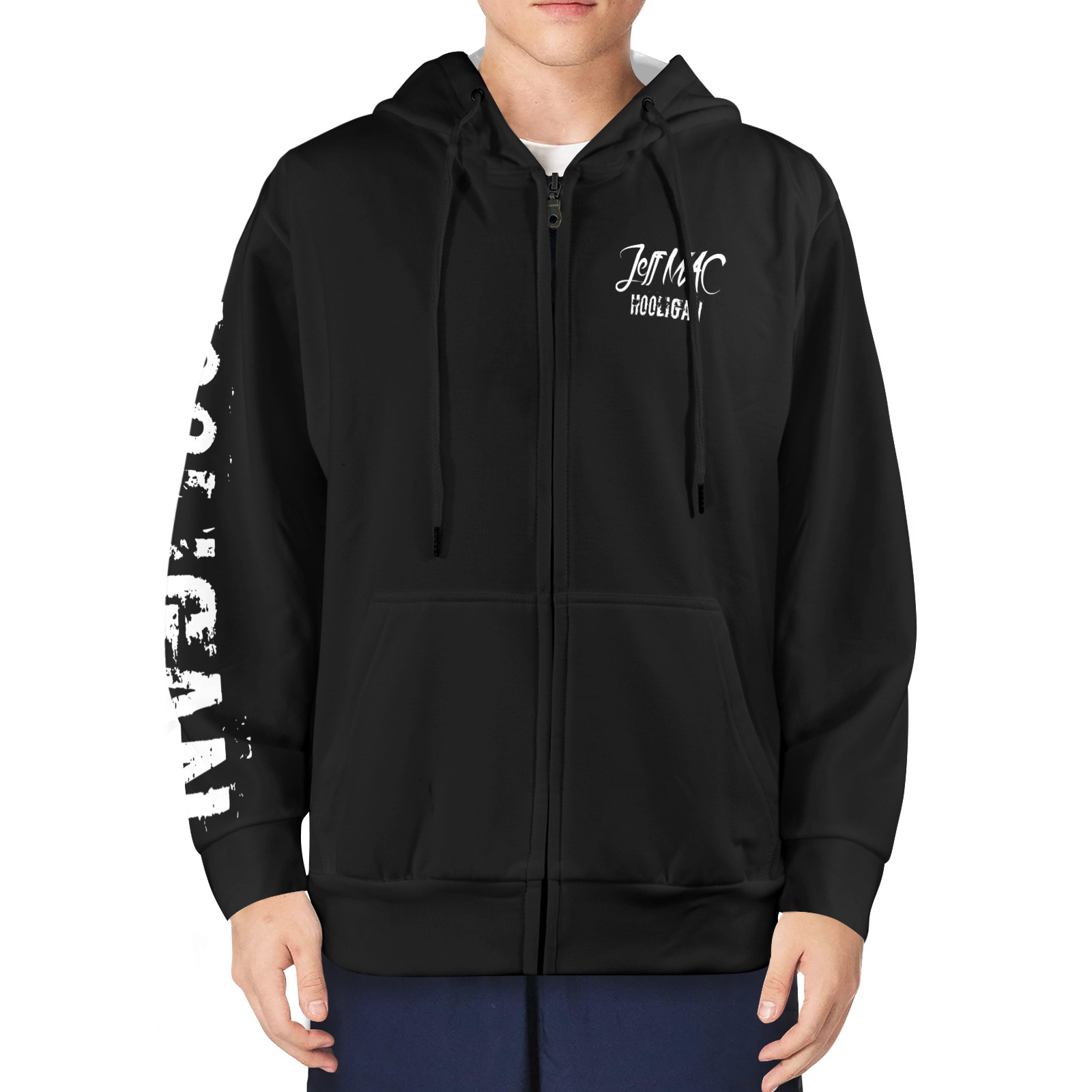 JM Hooligan Hoodie (Black) Men's Fleece Full-Zip Hoodie (Model H60)