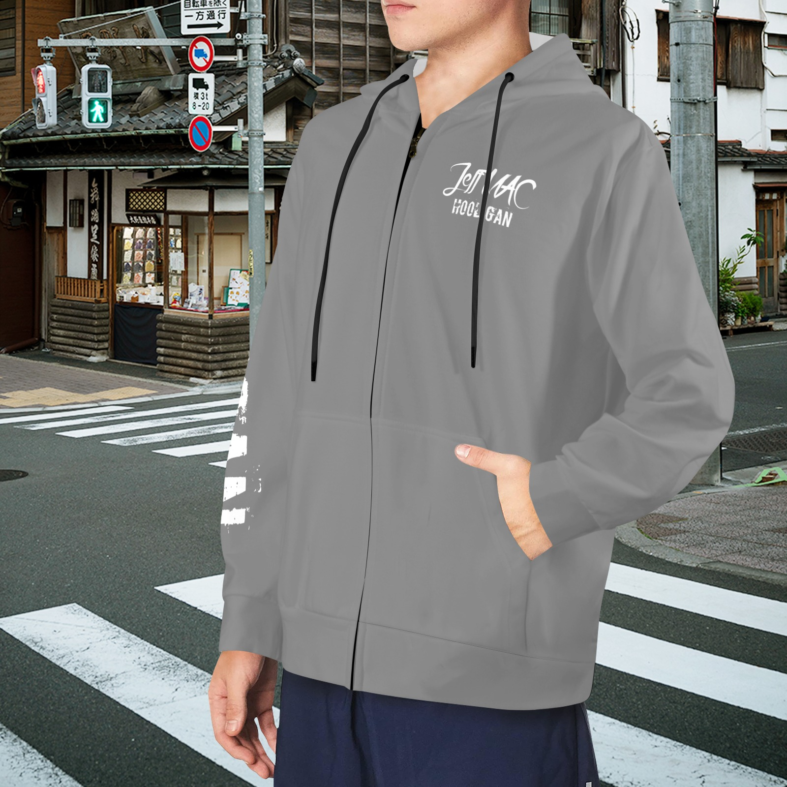 JM Hooligan Hoodie (Grey) Men's Fleece Full-Zip Hoodie (Model H60)