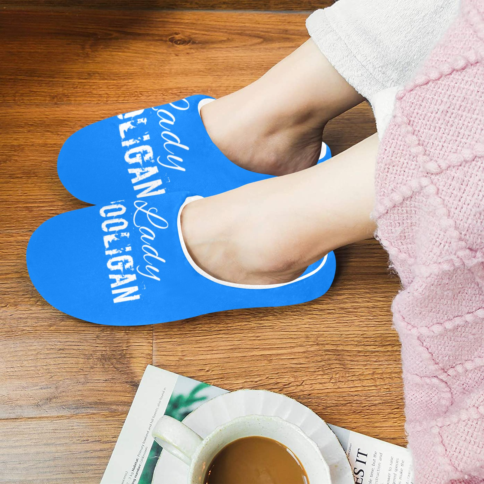 Lady Hooligan Slippers (Blue) Women's Non-Slip Cotton Slippers (Model 0602)