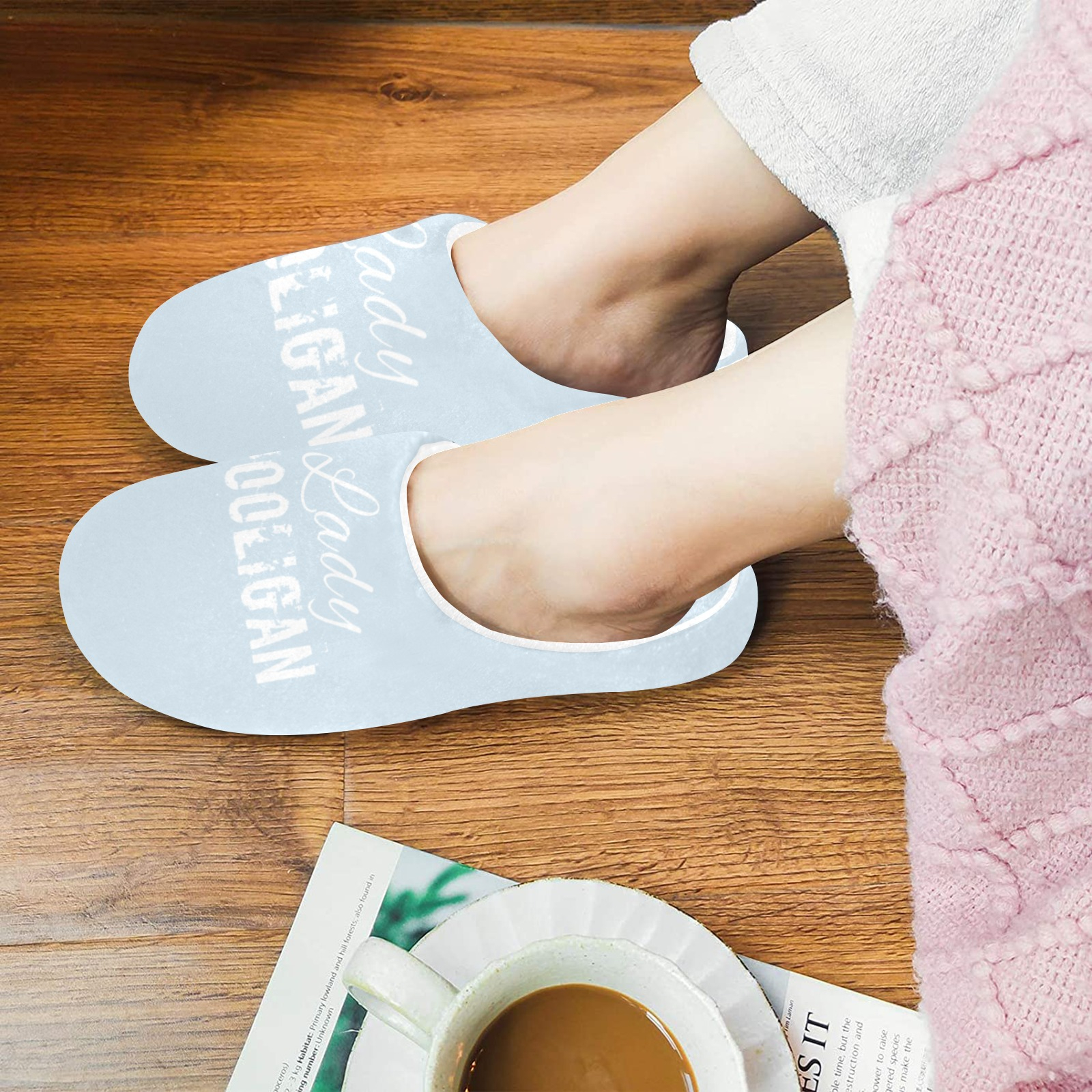 Lady Hooligan Slippers (Light Blue) Women's Non-Slip Cotton Slippers (Model 0602)